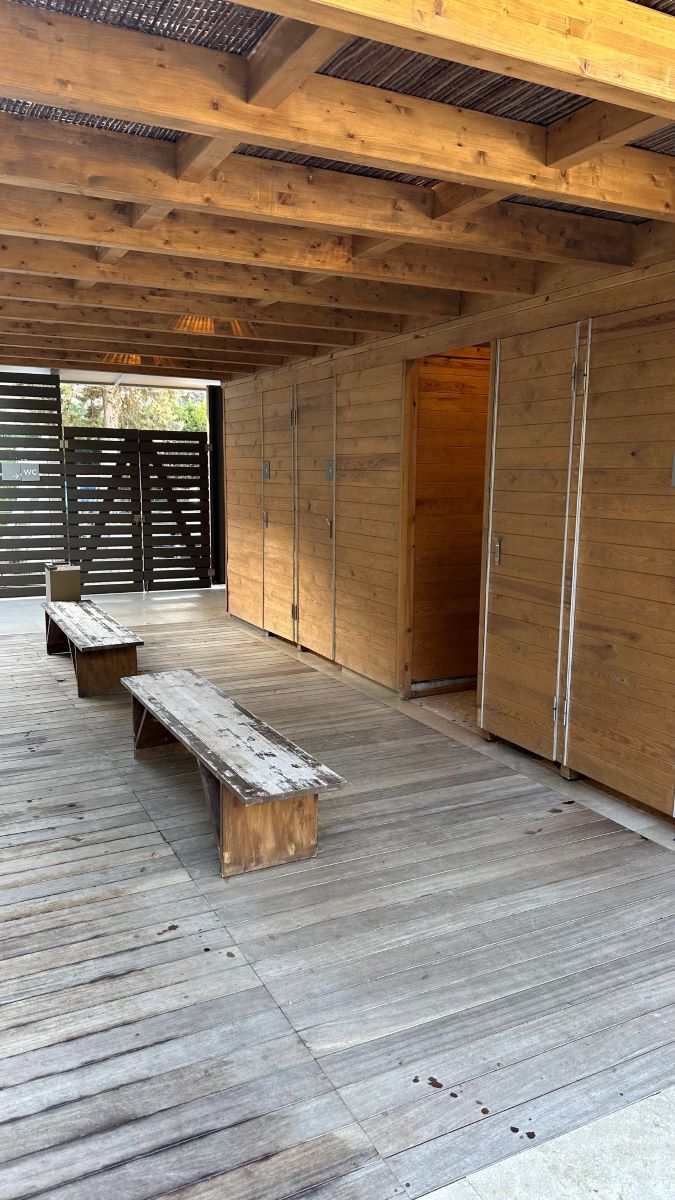 There aren’t any enclosed changing rooms as such, but there’s a large changing area with benches. There’s also a small bank of lockers where you can store your stuff. It’s handy if you’re there solo and have no one to watch your belongings while you swim.