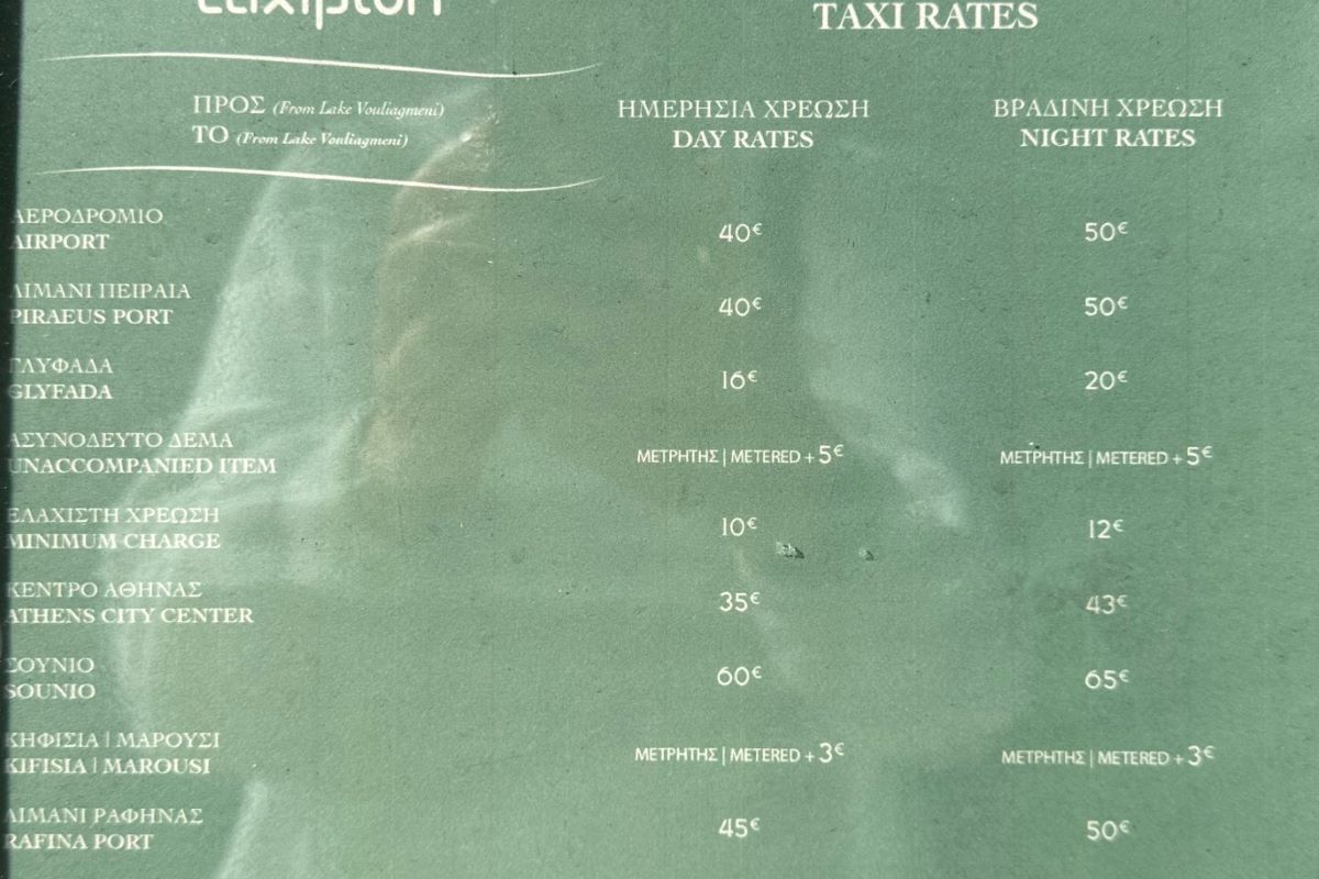 Taxis from the city centre cost about 35 euro. You can see other tariffs in the picture below.